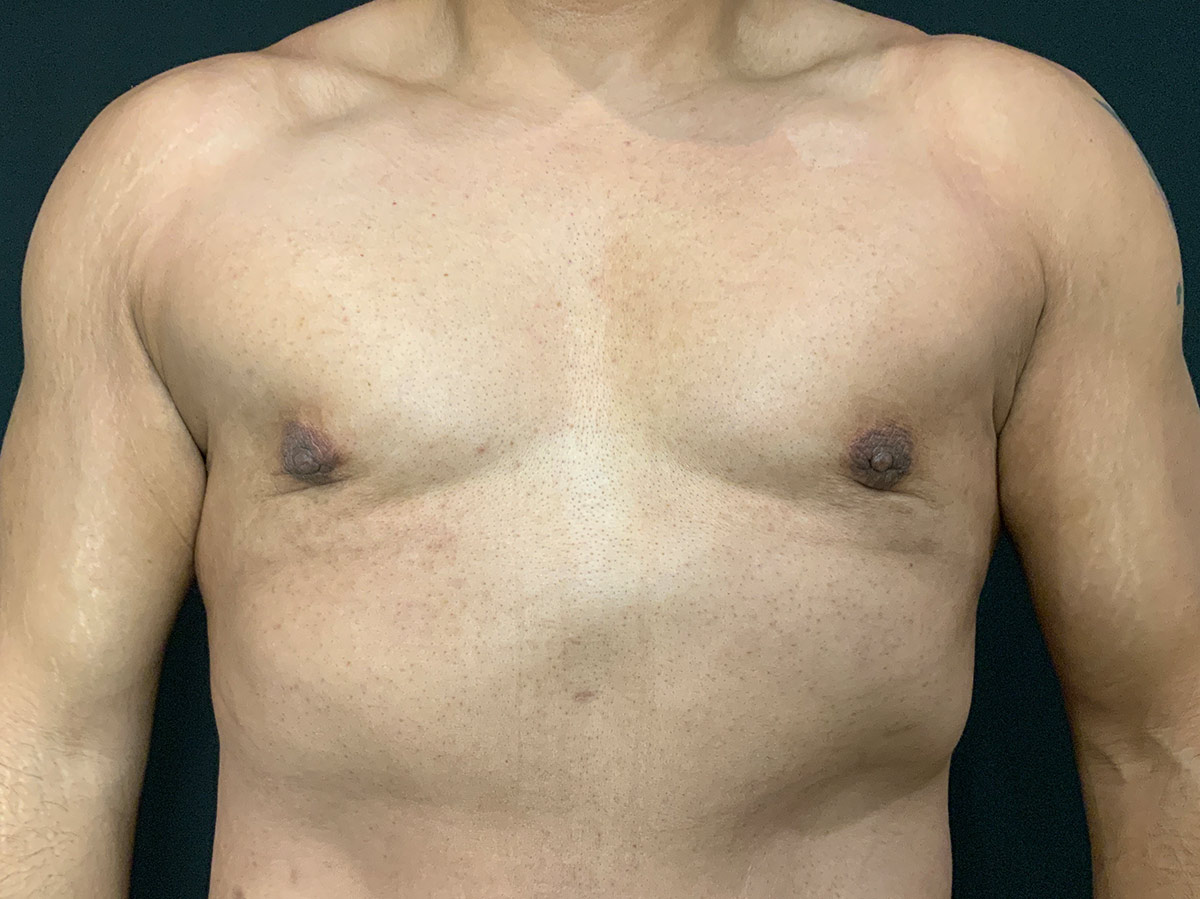 You will start to see a slimmer chest immediately following treatment, which will improve as the swelling diminishes. As recovery progresses, you should be able to appreciate the results of your surgery further. Any scars left behind are barely noticeable.